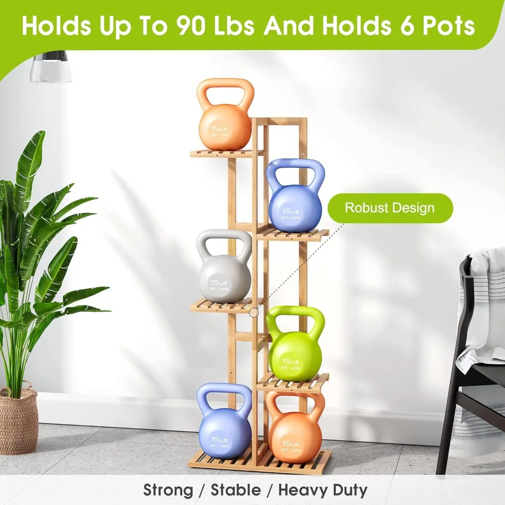BMOSU Bamboo Plant Stand for Indoor Outdoor Plants Corner Tall Plant Shelf 6 Potted Holder Shelf Plant Rack Holder Display Rack(