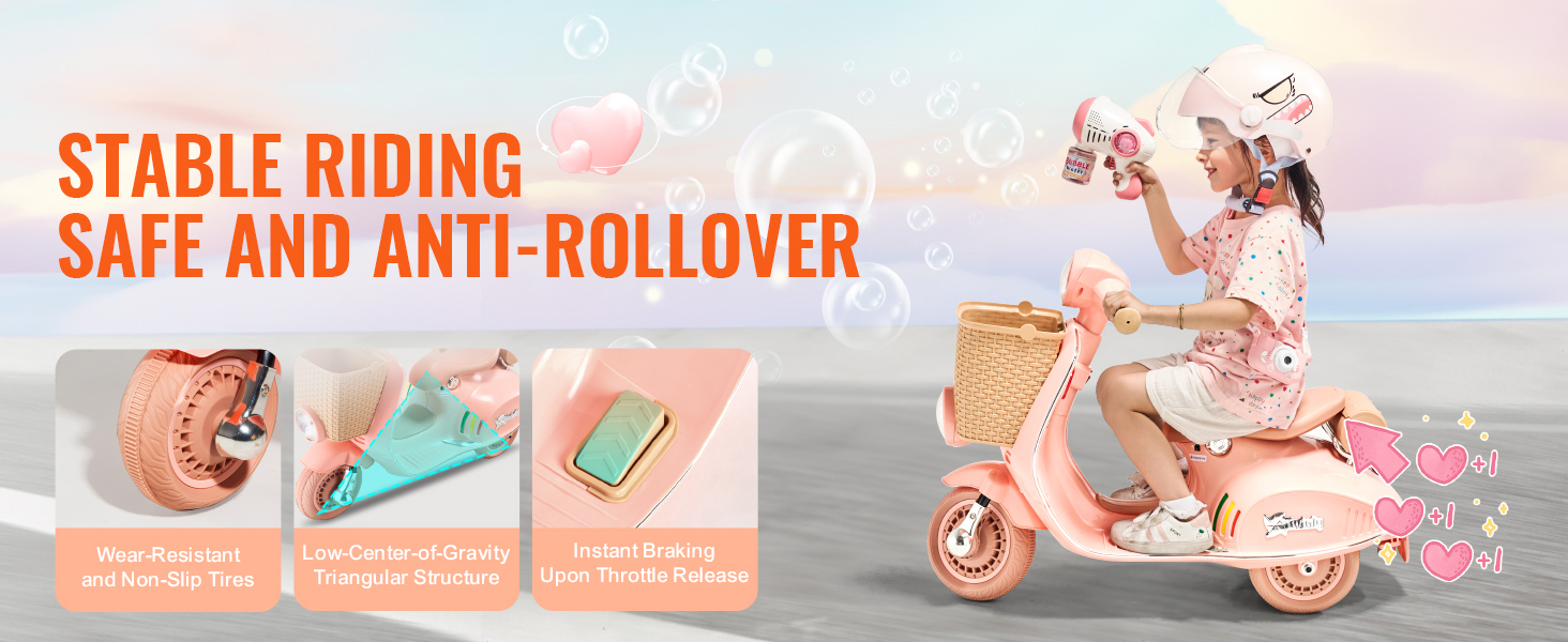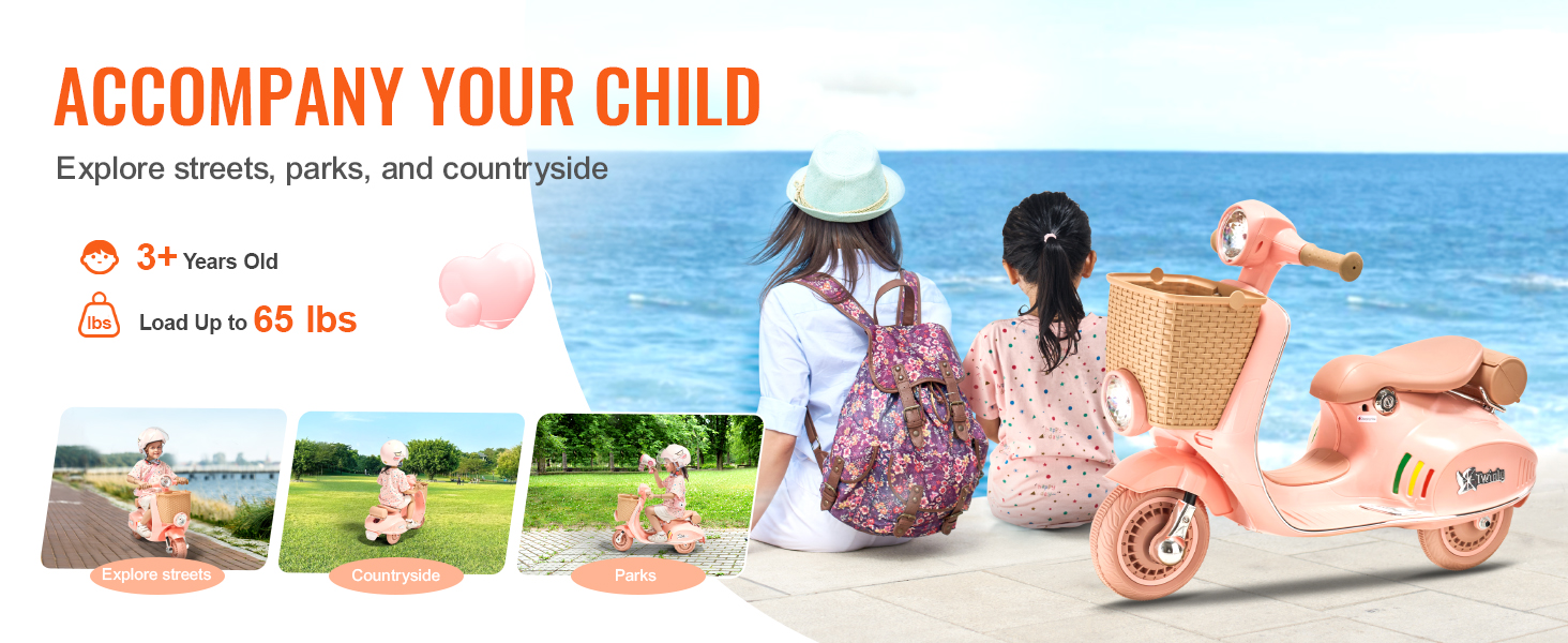 Effortless and Comfortable Travel:This children's motorcycle is crafted from durable materials, ensuring a solid and reliable design; Equipped with anti-slip, high-grip tires and a reliable braking system, it provides a safe riding experience for your child, giving you confidence in their security.