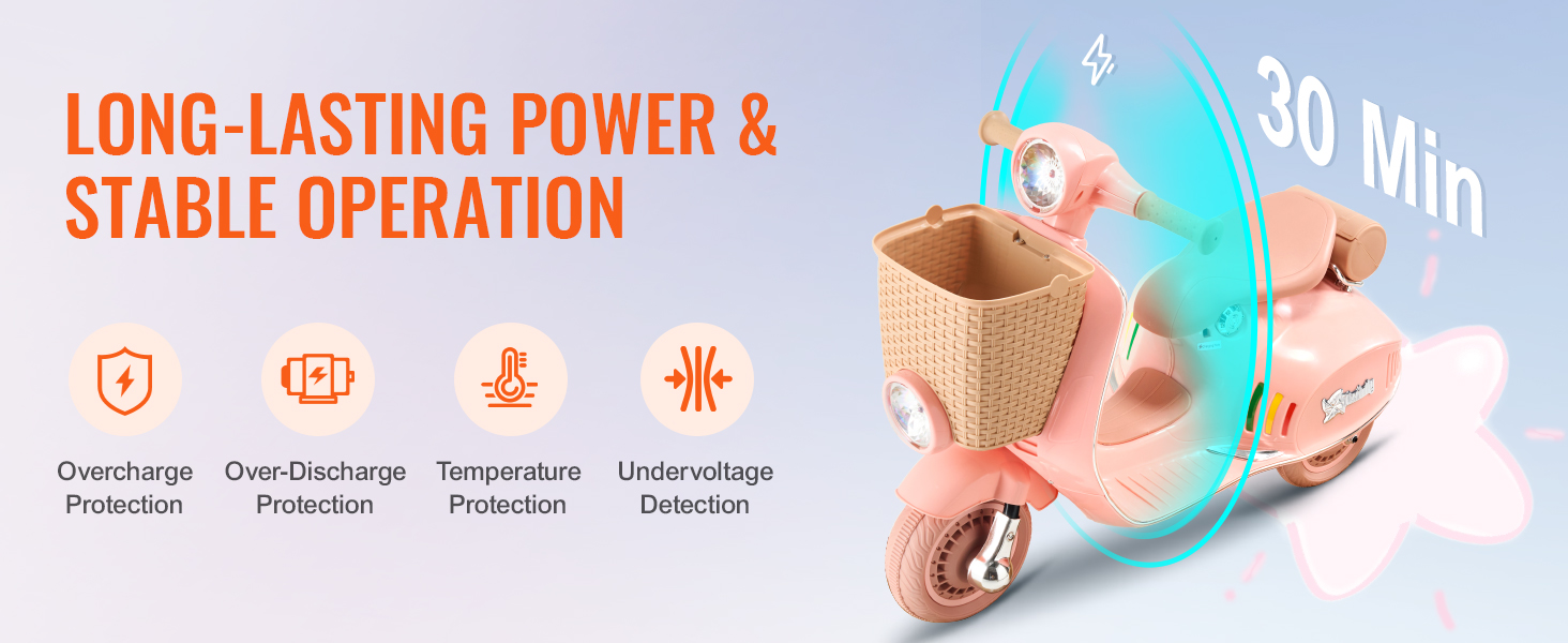 Durable and reliable energy source:Equipped with a powerful battery and intelligent voltage regulation, this children's motorcycle delivers efficient energy usage and smooth operation, providing extended riding enjoyment for young explorers.